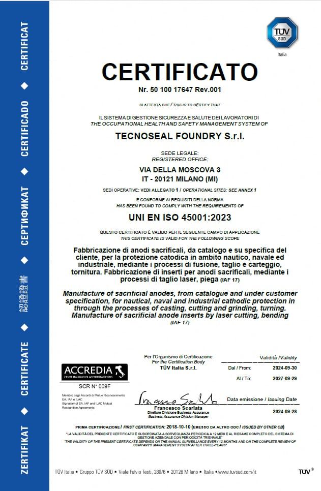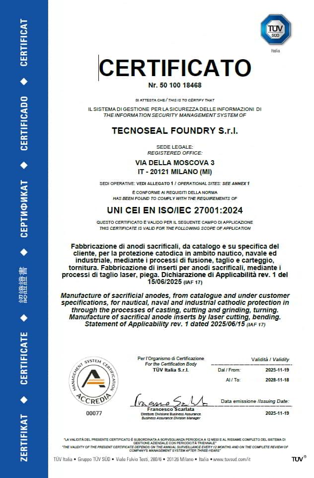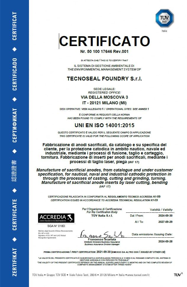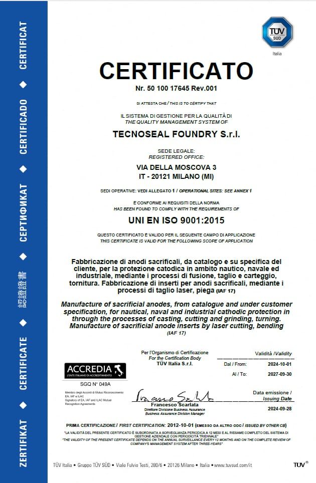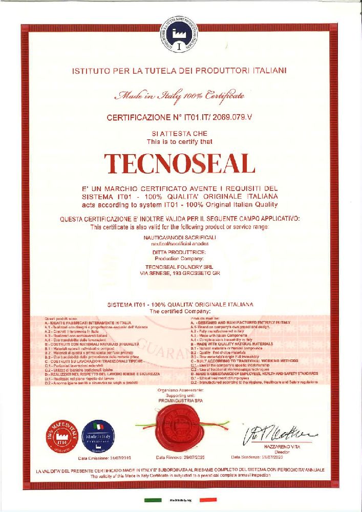 Tecnoseal is the first anode manufacturer to have obtained the official 100% MADE IN ITALY certification.